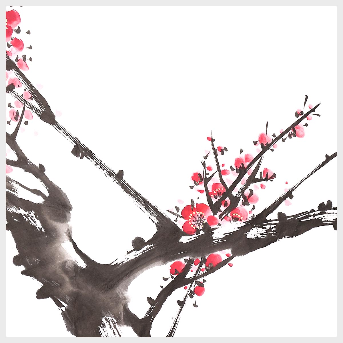 Web Tranh thủy mặc hoa đào đỏ thắm CV01A542. K thích thi có thể k xem không nên nói lời cay đắng. Chất liệu in ấn.